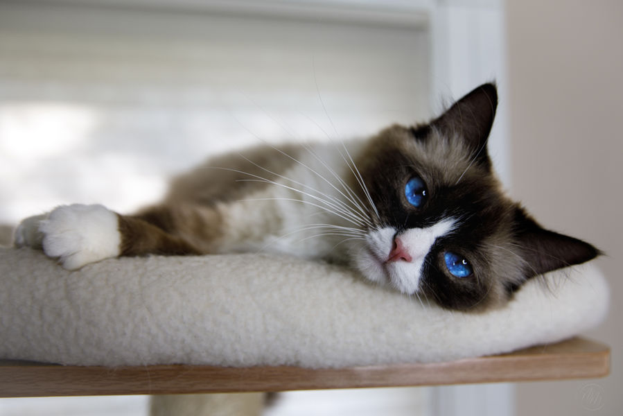 Pearl is a three-year-old Blue Point Mitted Ragdoll with a heart full of love and a personality that keeps us laughing. She is the perfect mix of calm and quirky—a total goofball at heart. Pearl has a talent for finding herself in the most unexpected places, whether she’s hanging upside down from the cat tree, wedged onto a bookshelf, or curled up in a laundry basket. Yet, no matter how silly her antics, she’s always happiest nestled in our arms, soaking up affection. With her sweet nature and endless charm, Pearl is truly one of a kind.